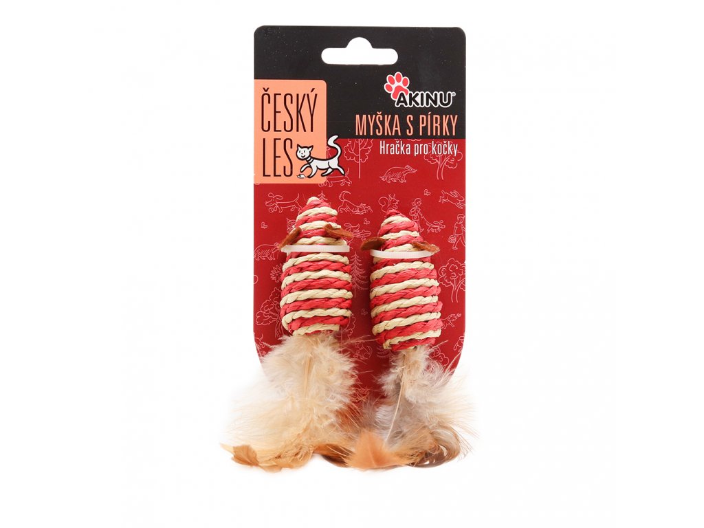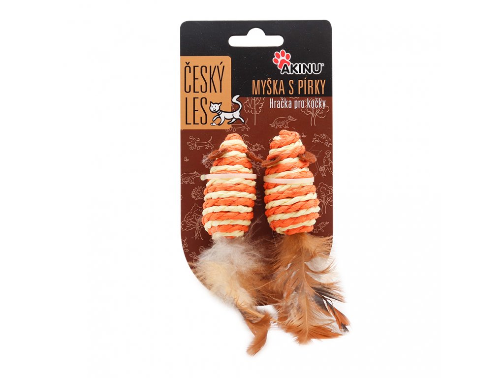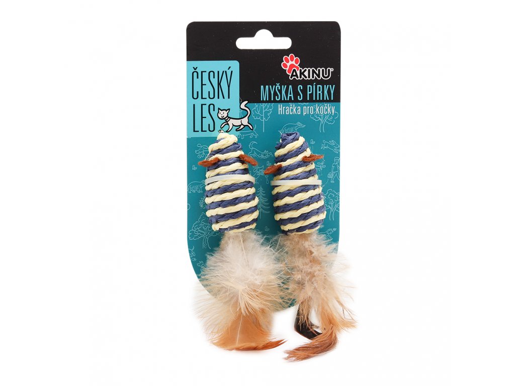 Akinu ČESKÝ LES sisal XS myška s pírky pro kočky 2ks