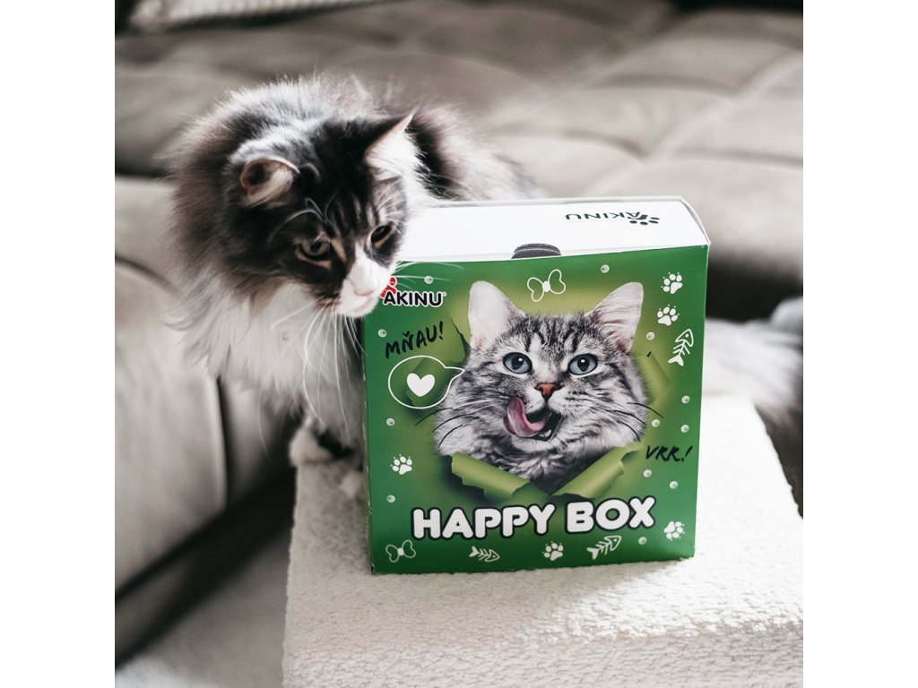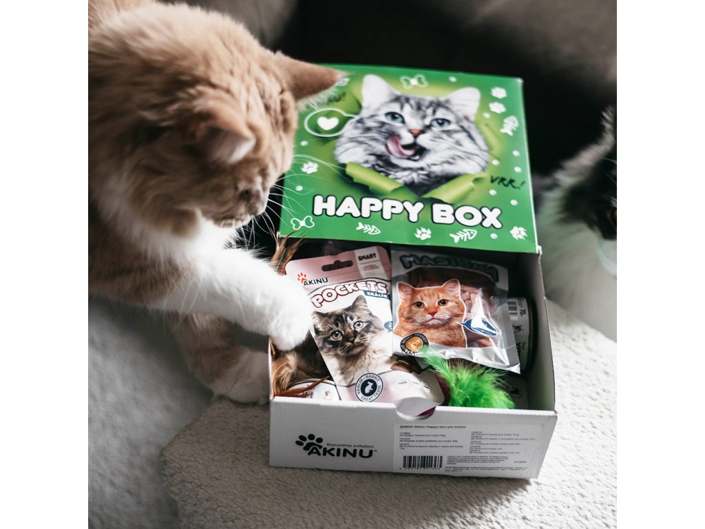 Akinu Happy box pro kočky: Dokonalý dárek pro každou kočičku s pamsky a hračkou ZDARMA.Ať už chcete udělat radost svému parťákovi nebo kočičímu kamarádovi, Akinu Happy box mu zaručeně udělá radost. V krásném balení najde nejen oblíbené pamlsky, ale také prověřené hračky, které zaručeně sklidí úspěch u všech chlupáčů. A vy zase můžete mít radost z výhodného nákupu.