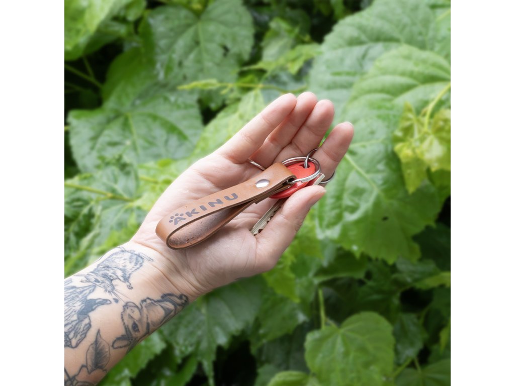 Elegantní klíčenka je vyrobena z kvalitní imitace kůže v hnědém odstínu. Je opatřena gravírovaným logem Akinu. Díky pevnému kroužku udrží vaše klíče bezpečně pohromadě, ať už ji připnete ke klíčům od bytu, auta nebo k batohu.