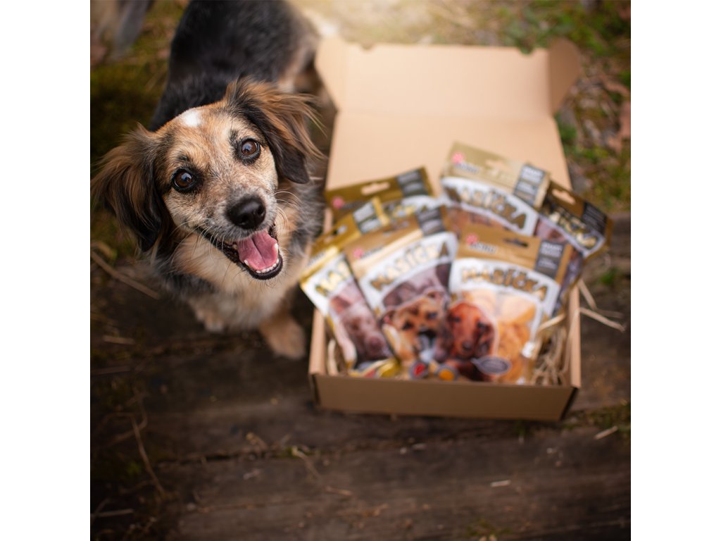 Box bude jak krásný dárek pro vašeho pejska středního či velkého plemene, tak jako milá pozornost při návštěvě psí domácnosti. Zásoba oblíbených Akinu masíček je totiž krásně zabalená a připravena k darování.