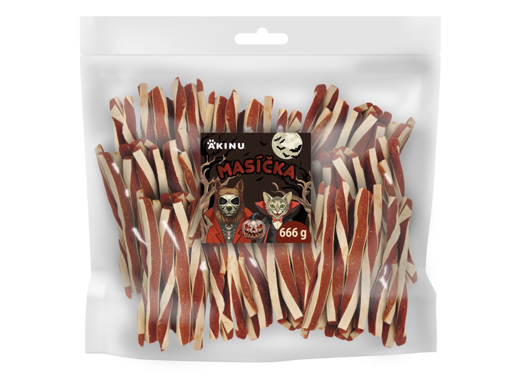 Akinu MASÍČKA Jehněčí twister pamlsek pro psy 666 g je limitovaná halloweenská edice, která nadchne všechny psí mlsouny. Voňavé jehněčí maso stočené do originálních twisterů potěší chuťové buňky a přinese nezapomenutelný zážitek při každém zakousnutí.