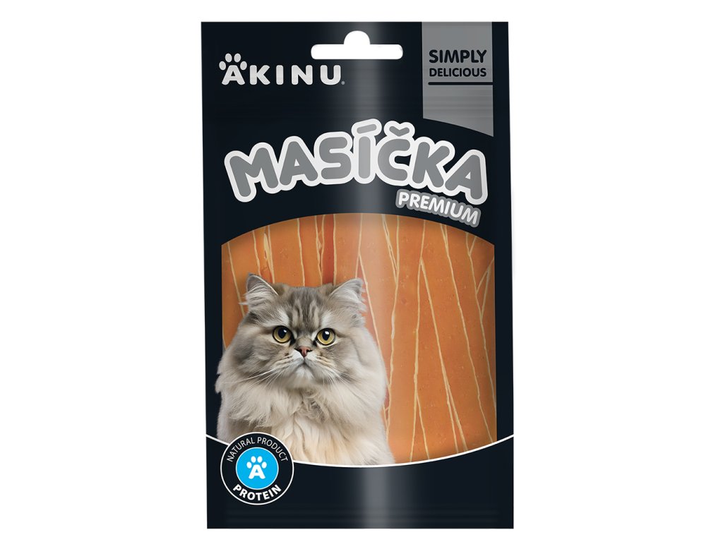 Akinu MASÍČKA PREMIUM Losos s treskou mini proužky pamlsek pro kočky 50 g: chutná odměna pro každý den