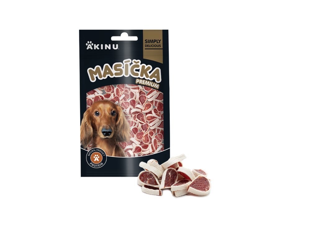 Akinu MASÍČKA PREMIUM Mini kachna pamlsek pro psy mramorovaný 75 g: chutná odměna pro každý den