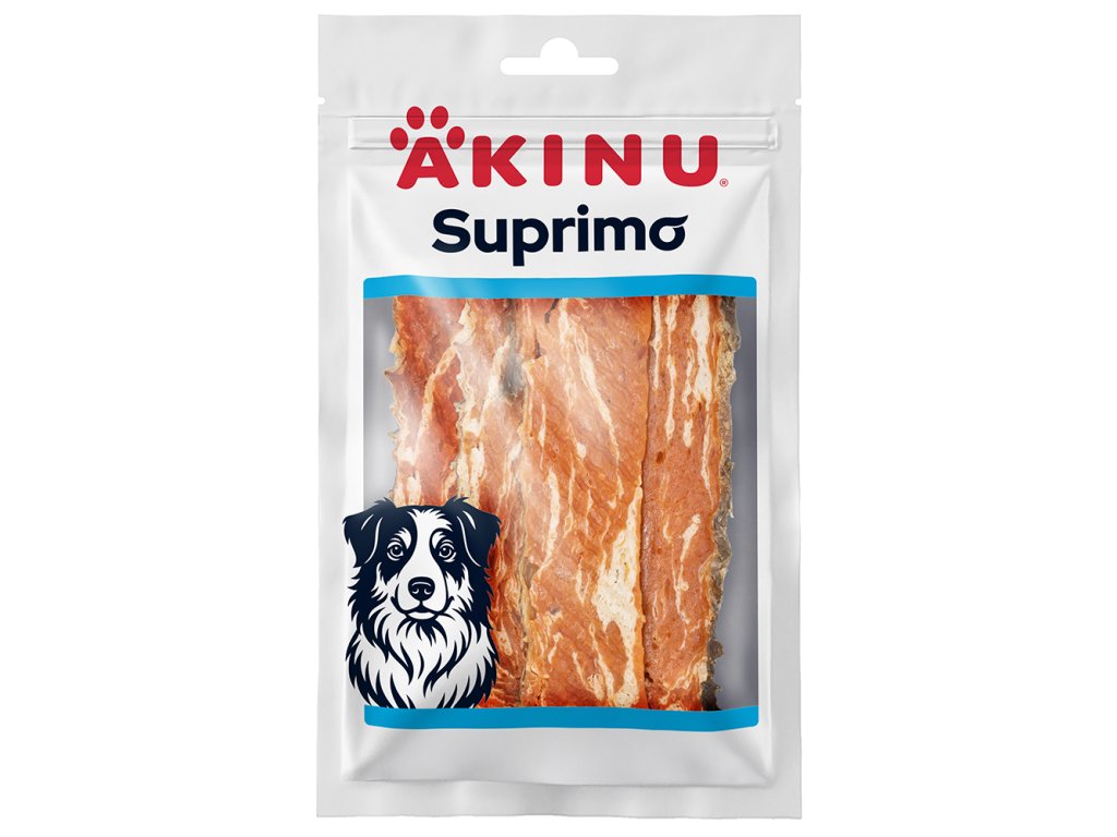Akinu SUPRIMO Losos s kůží plátky pamlsek pro psy mramorované 75 g