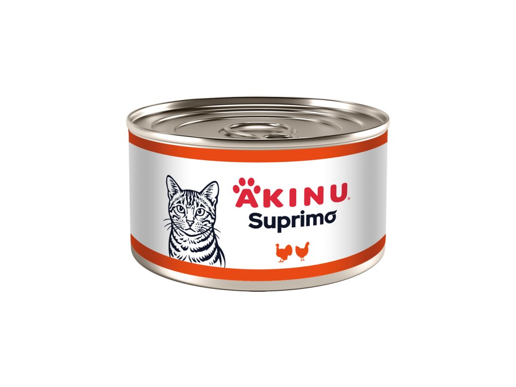 Akinu SUPRIMO je nová značka zaměřená na poctivou masovou chuť a jednoduché receptury – pro chvíle, kdy chcete kočce nabídnout spolehlivou konzervu bez zbytečných složitostí.