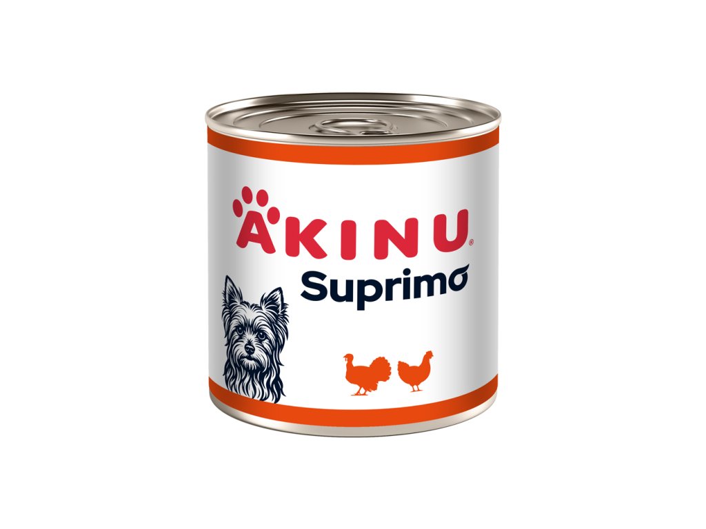 Akinu SUPRIMO je nová značka zaměřená na poctivé masové receptury pro běžné krmení – když chcete jednoduchou a spolehlivou volbu v podobě konzervy pro psy, která psům chutná a páníčkům dává jistotu.