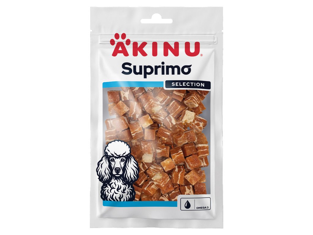 Akinu SUPRIMO Losos kostky pamlsek pro psy mramorovaný 75 g
