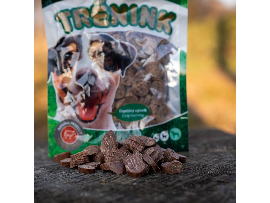Hovězí tréninkové pamlsky jsou velmi oblíbené a tááák voňavé. Navíc jsou nakrájené na malé lupínky, a tak jsou připraveny rovnou k odměňování a pejsek se nezdržuje dlouhým žvýkáním. Maso je pro psa přirozeně velmi lákavé, voňavé a chutné, a tak jsou tyto pamlsky ideální motivací a odměnou.