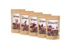 Krmivo VITALITY je GMO FREE, což znamená, že není vyrobeno z geneticky modifikovaných surovin. Holistické superprémiové krmivo VITALITY svou kvalitou surovin a vyvážeností receptur splňuje nároky na krmivo podporující zdravý a dlouhý život našich miláčků. Kromě masa a přílohy obsahuje také ovoce, bylinky, vitamíny a prebiotika.
