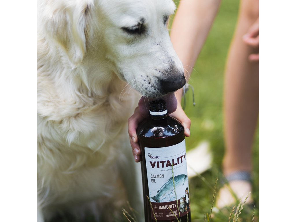 Hledáte pro svého mazlíčka přírodní doplněk stravy, který neodolatelně chutná? Lososový olej z Norska zlepšuje kvalitu srsti, posiluje metabolismus, je bohatým zdrojem energie a navíc je tak lahodný, že si ho pejsci i kočky dají klidně i ze lžičky.Doplněk stravy pro psy i kočky, který podporuje imunitu: Akinu VITALITY lososový olej
