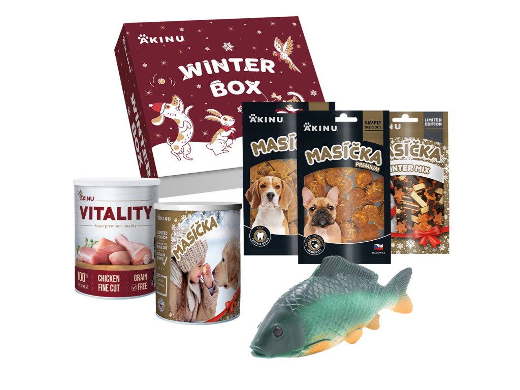 Vánoce jsou časem hojnosti a výjimečných chutí a i váš pejsek si zaslouží dopřát něco speciálního. Proto jsme připravili Akinu WINTER BOX PREMIUM pro psy, který spojuje to nejlepší z našich pamlsků a konzerv, doplněné o vánoční hračku. Je to opravdový sváteční dárek pro chlupatého člena vaší rodiny.