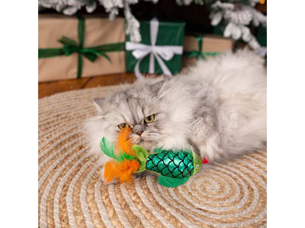- Akinu VÁNOCE Plyšový kapr s pírky hračka pro kočky zelená 15 cm