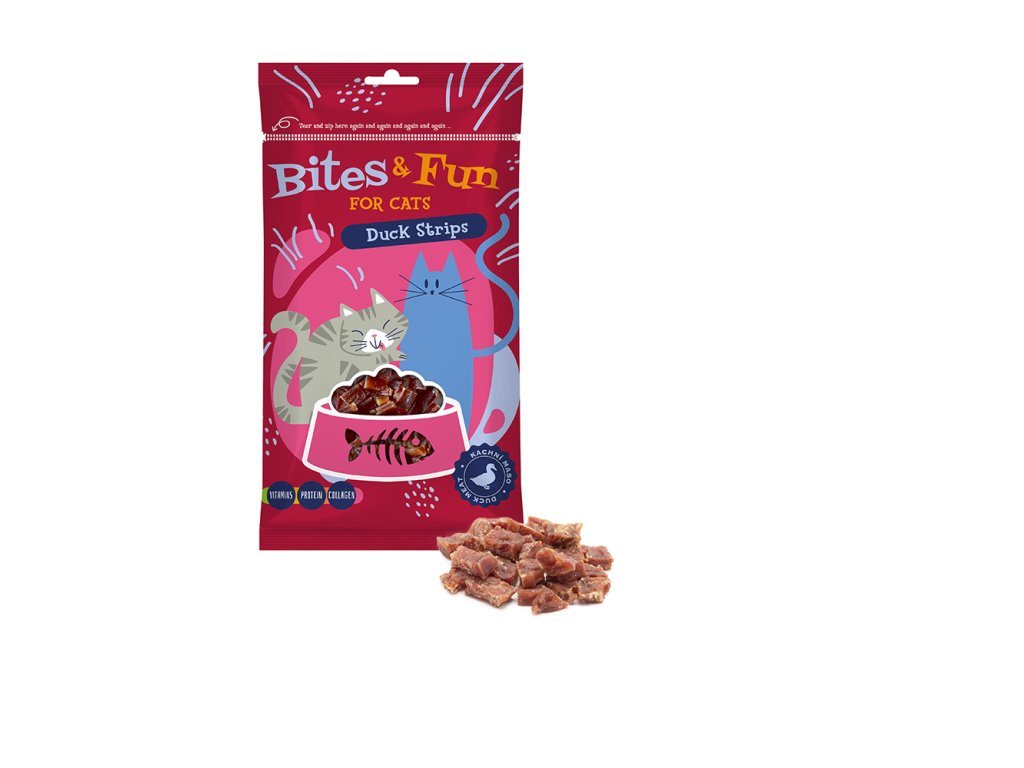 Akinu BITES & FUN kachní stripsy svou lákavou vůní přilákají vaši kočku, když ji doma právě potřebujete najít.