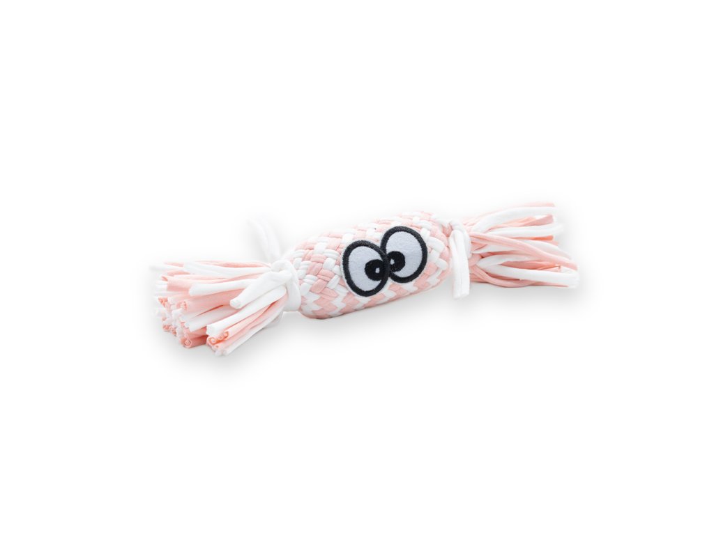 Tato látková hračka ve tvaru bonbonu měří 18 cm a je ideální pro menší i střední psy. Je ušitá z příjemného materiálu, má vyšitá očka a uvnitř skrývá pískátko, které podněcuje zájem a chuť si hrát. Skvělá jako mazlík na doma nebo společník na cesty.