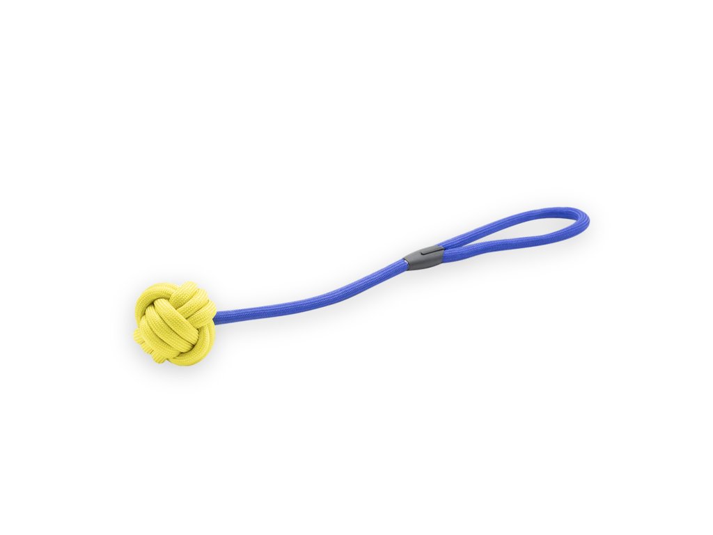 Lehká látková hračka dlouhá 45 cm spojuje míček a šňůrku v jedno, což umožňuje snadné házení i přetahování. Díky měkkému, ale odolnému materiálu je šetrná k psím zubům a dásním, ale zároveň dostatečně pevná na každodenní hru.