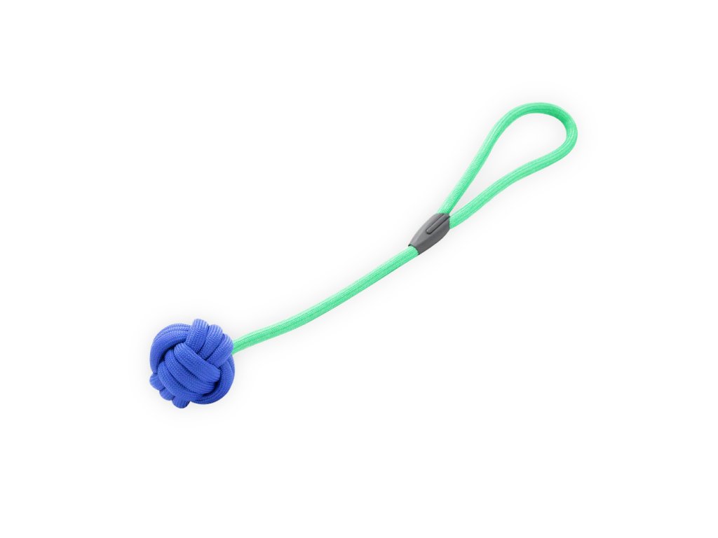 Lehká látková hračka dlouhá 45 cm spojuje míček a šňůrku v jedno, což umožňuje snadné házení i přetahování. Díky měkkému, ale odolnému materiálu je šetrná k psím zubům a dásním, ale zároveň dostatečně pevná na každodenní hru.