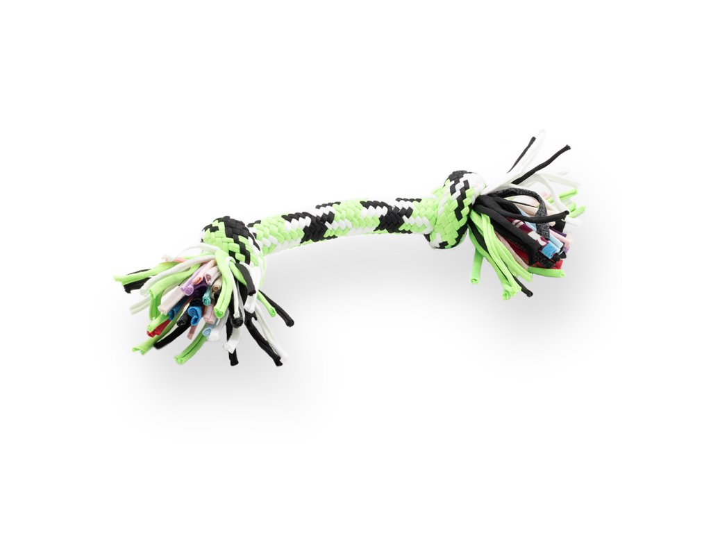 Tato klasická bavlněná hračka o délce 30 cm je uzpůsobena tak, aby pomáhala zmírnit svědění dásní během růstu zoubků. Přirozené žvýkání navíc podporuje zdraví chrupu a posiluje čelistní svaly. Díky dvěma pevným uzlům je ideální pro jemné přetahování i samostatnou hru.