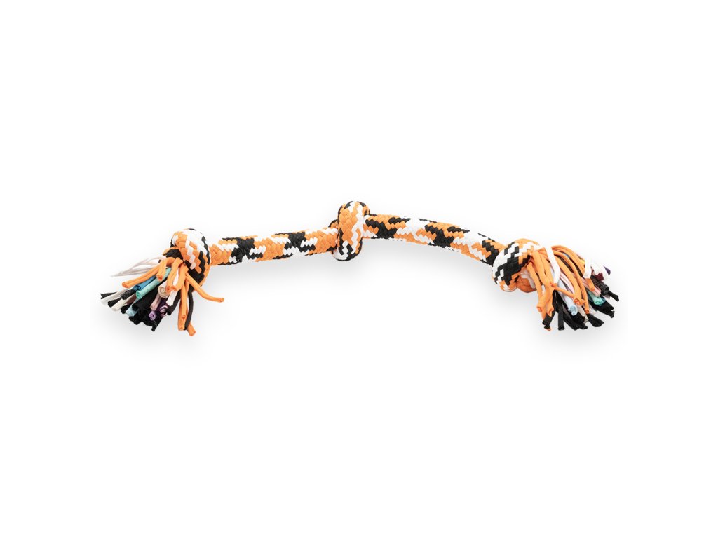 Toto bavlněné přetahovadlo o délce 45 cm je vyrobeno z odolného materiálu, který je šetrný k psím zubům. Díky třem pevným uzlům je vhodné i pro silnější čelisti a větší psy, kteří si rádi hrají na přetahovanou. Hračka zároveň podporuje zdravé žvýkání a pomáhá mechanicky čistit chrup.