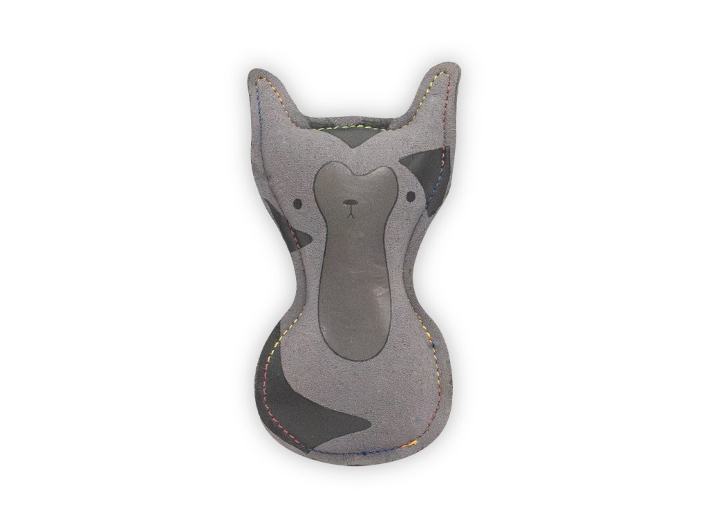 Tato 7 × 12 cm velká hračka ve tvaru kočky je vyrobena z měkké kůže, která příjemně voní a láká ke hře. Uvnitř se ukrývá pískadlo, které motivuje ke kousání a nošení. Díky svému tvaru a materiálu je vhodná pro menší a klidnější psy, kteří si hračky spíš nosí nebo jemně žvýkají.