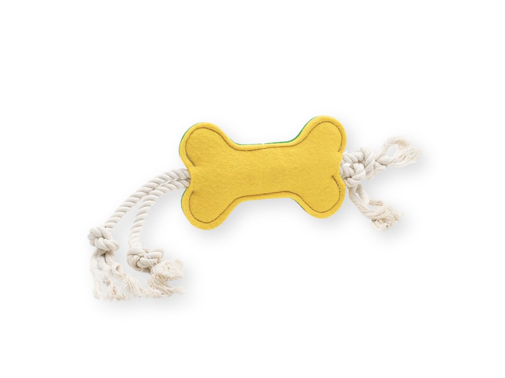 Tato 10 × 30 cm dlouhá hračka v sobě kombinuje kostičku z pevné látky a dvě odolná lana s uzly na koncích. Je vhodná pro jemnější přetahování, žvýkání i nošení. Díky atraktivnímu tvaru a kontrastnímu materiálu si získá pozornost každého chlupáče.