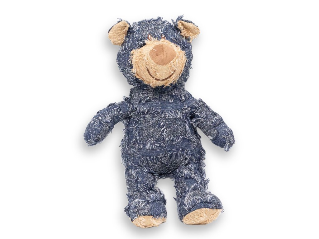 HUGS by Akinu Medvídek modrý – pískací plyšák se záplatami.