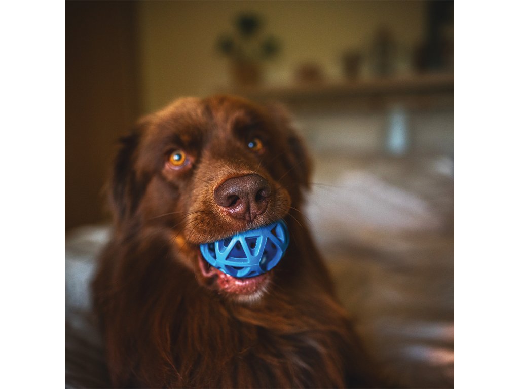 Míček o průměru 7 cm je vyrobený z pružného materiálu, takže je šetrný k zubům i dásním. Dutý design s velkými otvory umožňuje snadné uchopení, přenášení i přetahování. Skvělý pro aportování doma i venku.