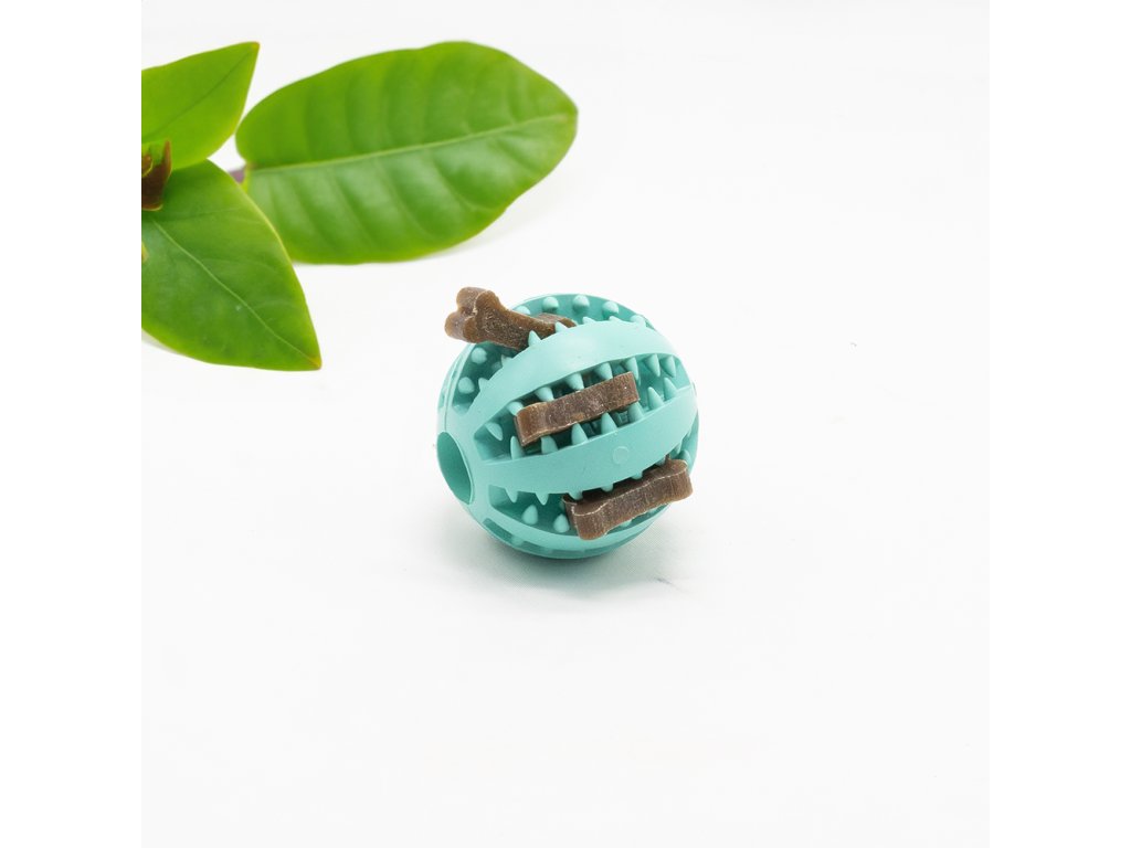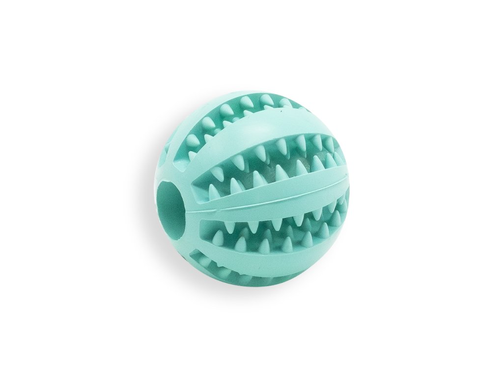 Tento odolný míček o průměru 5 cm má drážkovaný povrch, který pomáhá čistit zuby při každém kousnutí. Jeho dutý vnitřek lze naplnit oblíbenými pamlsky, paštikou či jogurtem což z něj dělá ideální hračku na delší zabavení a mentální stimulaci.