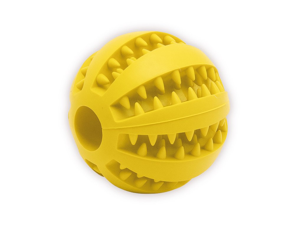 Tento míček o průměru 5 cm je vyroben z odolné gumy a má drážkovaný povrch, který při každém kousnutí přirozeně čistí zuby a masíruje dásně. Díky dutému středu ho lze naplnit oblíbenými pamlsky, paštikou či jogurtem a dopřát tak psovi delší mentální stimulaci i zábavu.