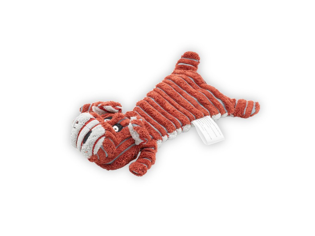Tato 24 × 14 cm velká hračka kombinuje plyšovou hlavu s výplní a pískadlem a látkové tělo se šustivým materiálem, který povzbuzuje zájem o hru. Díky lehké konstrukci je vhodná pro menší psy a štěňata, kteří si rádi hrají jemně a objevují nové podněty.