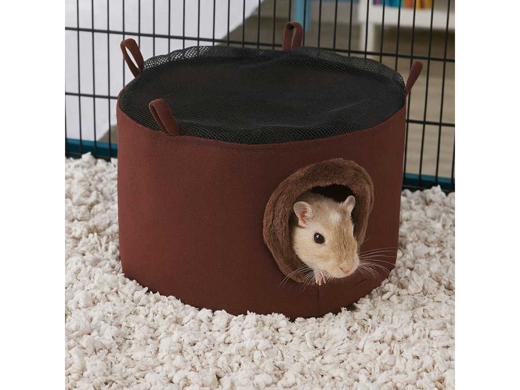 Závěsný pelíšek je vyroben z měkkých materiálů a vybaven vnitřním polštářkem z jemného, hřejivého fleecu. Díky čtyřem karabinám ho snadno upevníte do klece. Mazlíček si tak užije svůj klid v bezpečí, a navíc bude mít dokonalý výhled na své okolí.